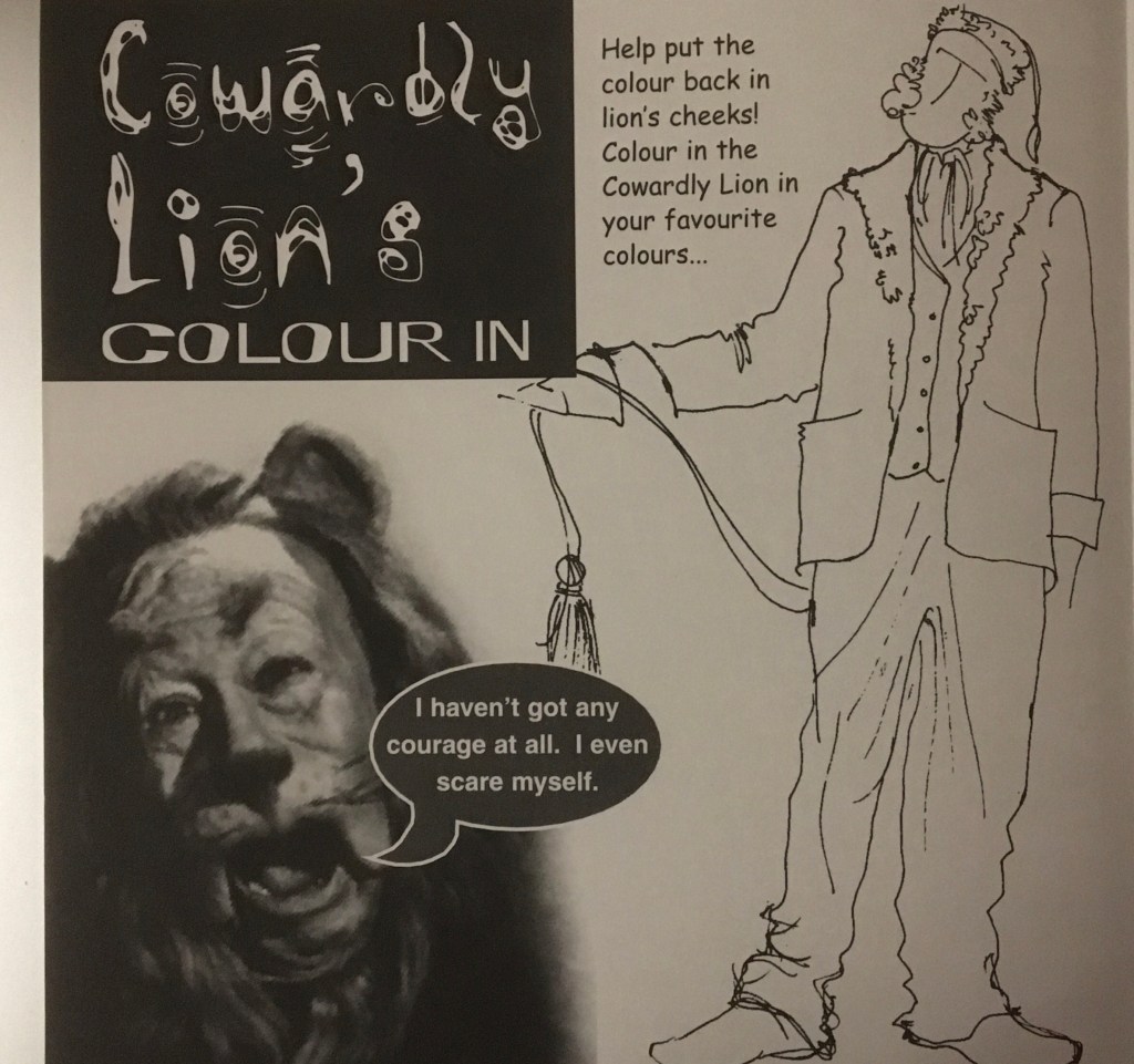 In hindsight, it was perhaps a little tasteless to have a “Help put the colour back in the lion’s cheeks” page in the free activity pack in the programme, but perhaps Professor Marvel’s crystal ball was broken when they did that design! (I coloured mine in green BTW 🤪)